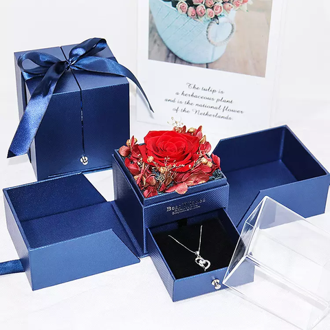 Boîte à bijoux en forme de fleur éternelle, rouge, rose, bleu, de qualité, boîte à bijoux à double ouverture, boîte-cadeau à fleurs pour la saint-valentin, vente en gros